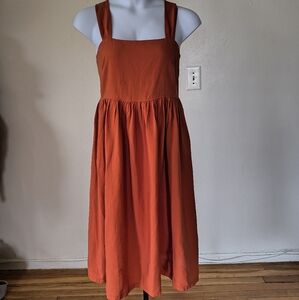 Uniqlo Linen Blend Shirring Sleeveless Dress Orange Size Large Summer Minimalist