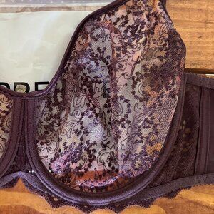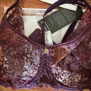 This stunning bra deep purple by Empreinte is in French size 80E. It fits like a 32DD.