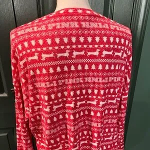 SET! This stylish women's pajama set from Pink by Victoria's Secret features a vibrant red Christmas design with the classic pink dog, perfect for adding a pop of color to your wardrobe. Be fashionable in the holiday spirit! Comfortable and chic, it's ideal for comfort and style during the holidays!