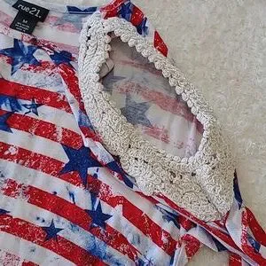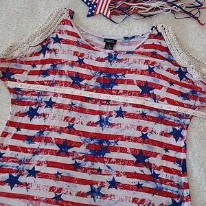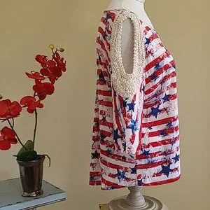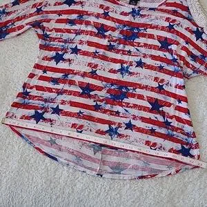 Stars & Stripes Cold Shoulder Top Rue21 Flag Patriotic 4th Womens 3/4 Sleeve Med