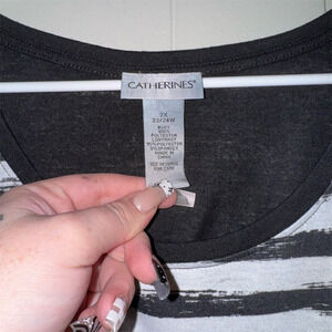 Catherines Women's Plus 2X Black & White Striped Floral Blouse Casual