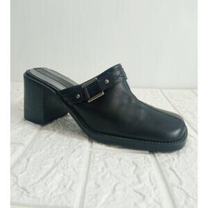 Vintage 90's Bass Leather Chunky Heels Womens Black Leather Buckle Y2K Size 7M