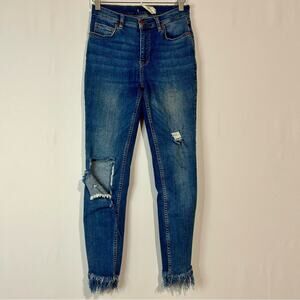 Free People Women’s Distressed Raw Hem Skinny Ankle Jeans Blue Size 27 FLAW