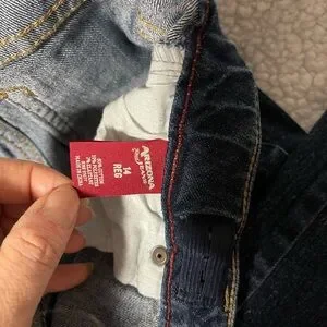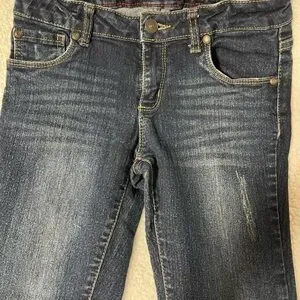 These classic blue denim jeans offer a timeless look with a comfortable fit. Perfect for any casual occasion. Size 14 junior, 11-12 y