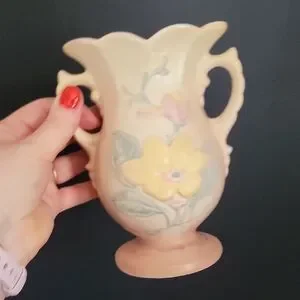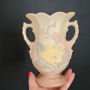 Elegant cream vase with floral accents, perfect for adding a touch of charm to any room.