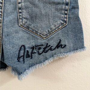 Stylish blue distressed denim shorts perfect for casual outings. Features a trendy frayed hem for a chic look.