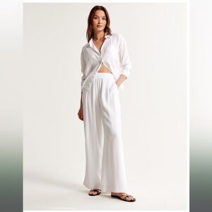 Abercrombie Crinkle Textured Pull On Pants White size medium