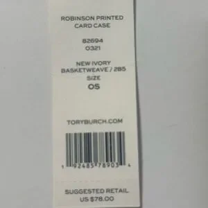 Chic Tory Burch card holder with a geometric design. Features black, ivory, and brown tones. Ideal for organizing cards.