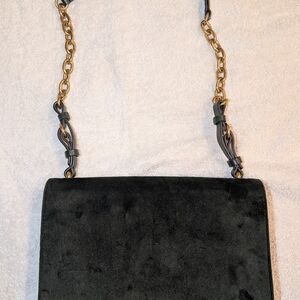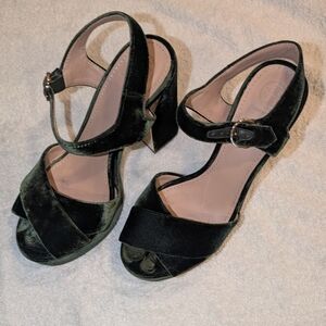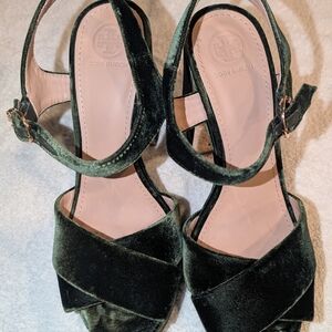 Elegant Tory Burch dark green (color-banana leaf)Sadie velvet and leather shoulder bag.Has gold hardware (original price) $428 in great condition. With matching chic green velvet platform sandals original price $389. Perfect for a stylish outing.Both items were only used a couple of times each.