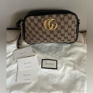 Gucci GG Marmont - Brown Canvas with Black Leather- Crossbody- Like New