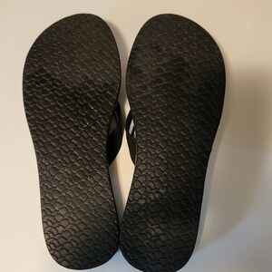 Stylish black flip flops by Reef. Perfect for casual wear.
