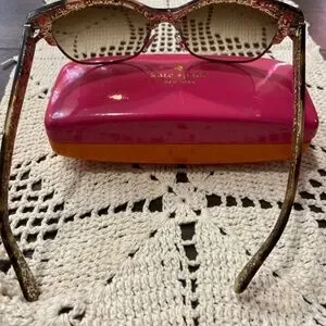 KATE SPADE SHIRA SUNGLASSES TORTOISE GOLD GLITTER CAT EYE WITH CASE
