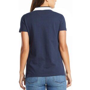 NWT Nautica Classic Fit Stripes V-neck Collar Stretch Cotton Polo Shirt L Navy