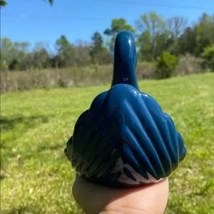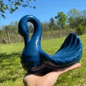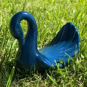 This captivating vintage blue ceramic towel holder embodies the elegance of a swan with its smooth, glossy finish and graceful curves. The hollow design introduces intriguing negative space, adding a sense of lightness to its solid form. Ideal for art lovers, it brings a sophisticated touch to any environment.