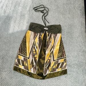 VINTAGE RETRO Y2K CHARLOTTE RUSSE COLORFUL GREEN SILKY SCARF HALTER TOP FUNKY M