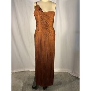 Herv� L�ger 'Draped' Brown Fringe One Shoulder Gown Size L