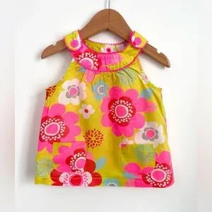 4/$20💥24M Carter's Neon Floral Summer Sundress, Lightweight Woven, Front Pockets