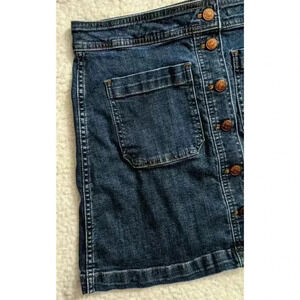 Madewell Dark Wash Denim Mini Skirt Button Front A-Line Cotton Stretch Size 10