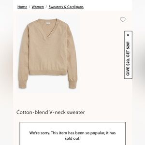 Woman’s J. Crew cotton v neck sweater size Medium. In excellent like new condition , washed once and hung to dry. Never worn. Basically new. Please reference all pictures and feel free to ask questions. Bundle and save! Check out my closet for more similar style items and variety of Sizes