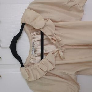 This elegant cream blouse features charming ruffle details and a sophisticated design. Perfect for any occasion, it adds a touch of class to your wardrobe.