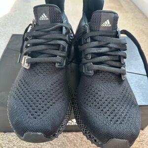 Stylish black Adidas running shoes with a unique sole design. Perfect for sports and casual wear. Ultra 4D comes with replacement box.