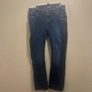 Wrangler Willow, ultimate riding Jean, has elastic in the waist be try comfy, barely worn, small spots at the bottom unnoticeable. Classic blue jeans by Wrangler. Perfect for casual wear.