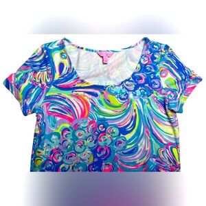 Excellent condition tshirt dress from Lilly Pulitzer! Scoop neck with rolled shirt sleeves.