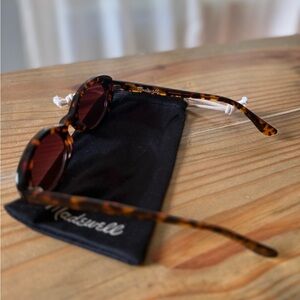 • chic Madewell sunglasses. Featuring a classic tortoise shell design, they offer both fashion and function.