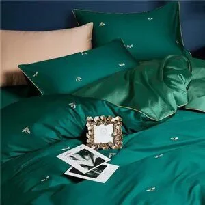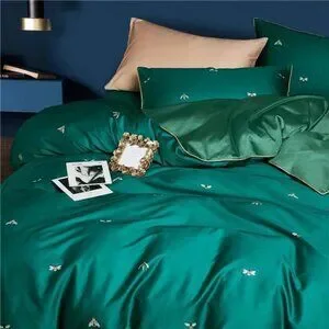 NEW Anthro Emerald Green Bee Boho Queen / King Size Bedding Duvet Sham Case Set