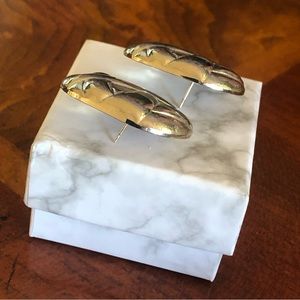 Vintage 80s silver plated large design pierced earrings, excellent vintage condition, medium weight, come on card with original metal/plastic backs, 1”x1 1/4”.