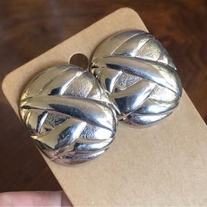 Vintage 80s silver plated large design pierced earrings