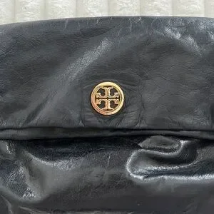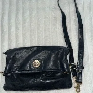 Vintage Tory Burch Dena Fold Over Black Leather Crossbody Bag