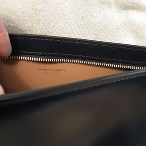 Elevate your style with the Mansur Gavriel navy leather pencil bag. Perfect for any occasion, this sleek and elegant accessory from Italian designer Mansur Gavriel complements any outfit. Never used, with tags. From a smoke free home. Be aware, this bag is NAVY BLUE, it is NOT black. One of 3 high end designer minis I currently have listed.