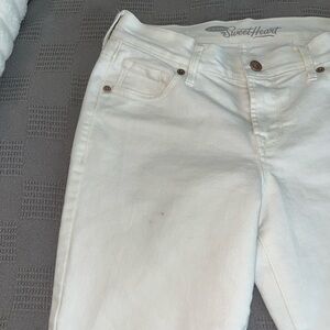 These Old Navy, The Sweat Heart jeans feature a classic straight leg design in a crisp white color, offering a timeless and versatile look. The smooth texture and clean lines make them perfect for any occasion, while the fitted waist ensures a comfortable and flattering fit.