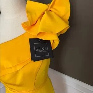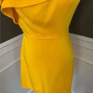 Mac Duggal Ine Shoulder Ruffle Dress in Lemon. Size 0. NWT.