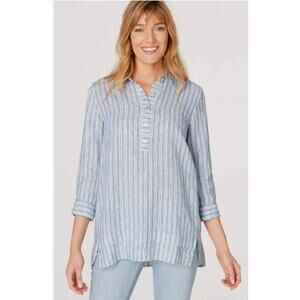 J Jill Perfect Linen Relaxed Tunic Popover Tahitian Teal Womens Size M Petite