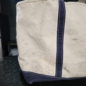 Selling Vintage L.L. VTG LL Bean Boat & Tote Canvas Bag Zip Close USA Made XL X-Large. The outside on one side is very stained (See Photos). The inside is relatively clean in comparison (See Photos). You can see the condition from the photos. You can get further information from looking at what is shown in the photos. Pricing low to sell fast. I offer combined shipping on multiple purchases. All purchases should arrive within 2 to 9 days. International buyers should expect longer shipping time. If there are any issues please do the right thing and message me before leaving feedback.
