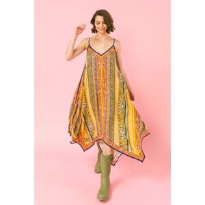 Flying Tomato Boho Print V Neck Sleeveless Hanky Hem Midi Dress