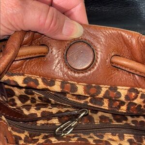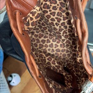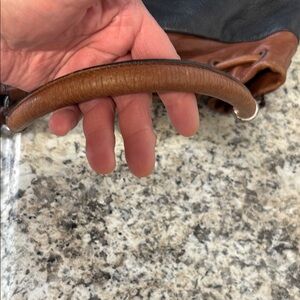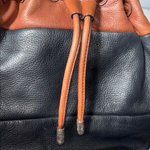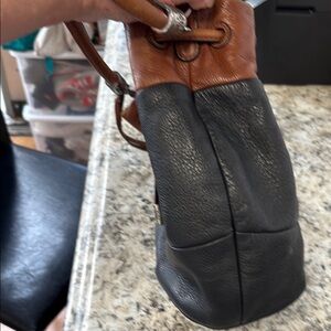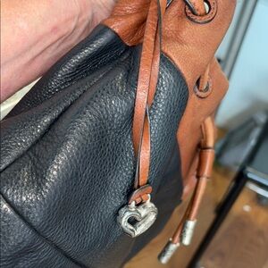 Stylish two-tone leather bag perfect for any occasion. Features a sleek black and tan design. Ideal for adding a touch of elegance to your outfit. Inside has 2 slip pockets & 2 zipper pockets, as well as the Brighton leather creed and key chain.