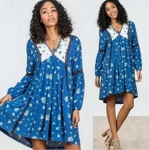 Chic and comfortable floral blue dress perfect for any occasion. Features a stylish design with a flattering fit.