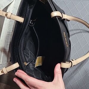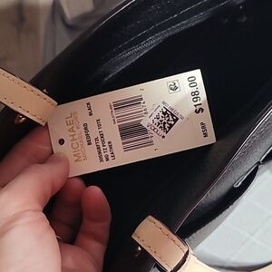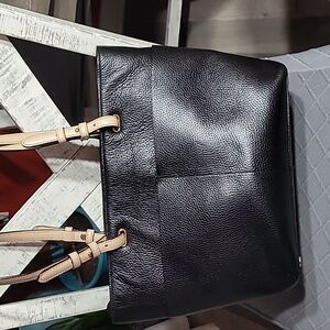 NWT Michael Kor Bedford Medium Black Peeble Tote Bag Cream Handles