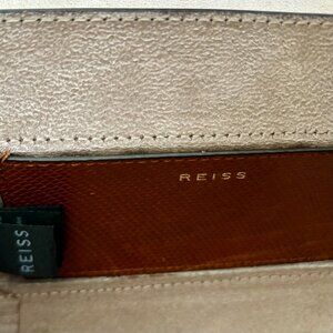 Reiss (David Reiss) created niche luxury brands known for his unique styling, detail & stitching. He has 160 shops in London and New York. This bag is all leather, 8” W 5”depth, 20’ drop from shoulder with a chain & leather strap. Magnetic close, exterior pocket , interior pockets as well. The bag is new without tags!