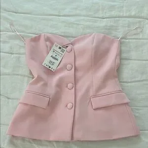 Elegant pink satin corset top by Zara. Perfect for a chic look.