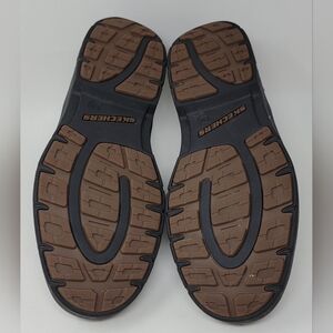 Step out in style with these Skechers men's shoes, featuring a sleek black and brown design. Perfect for everyday wear, these shoes offer both comfort and durability.