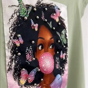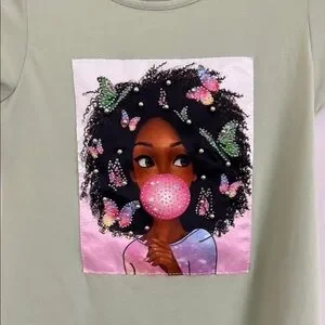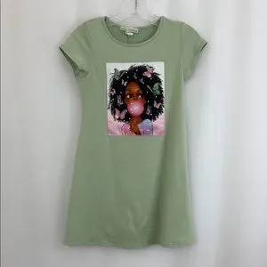 Girl’s Green Dress with Girl, Gum & Butterflies Graphic Print Size 10