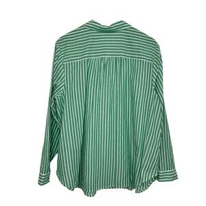 J Jill Womens Striped Cotton Button Up Shirt Sz XL Green White Long Sleeve