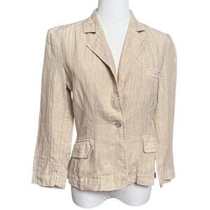 120% Lino Made in Italy Jacket Blazer Size 42 EU Long Sleeves One Button Closure