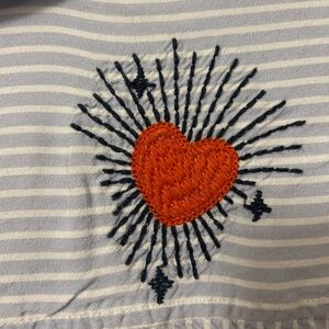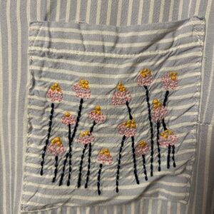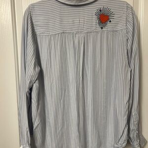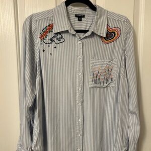 Torrid Lizzie Rayon Twill Embroidered Striped Button Up Long Sleeve Shirt M/L