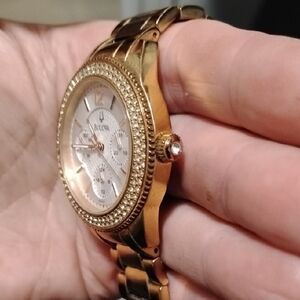 Elegant Bulova women's watch in a stunning gold finish. Perfect for adding a touch of luxury to any outfit.