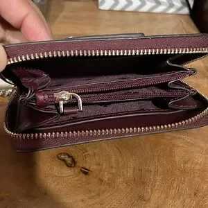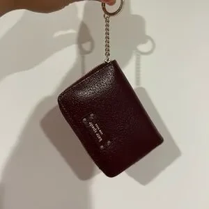 Elegant burgundy leather wallet by Kate Spade. Features a keychain attachment.